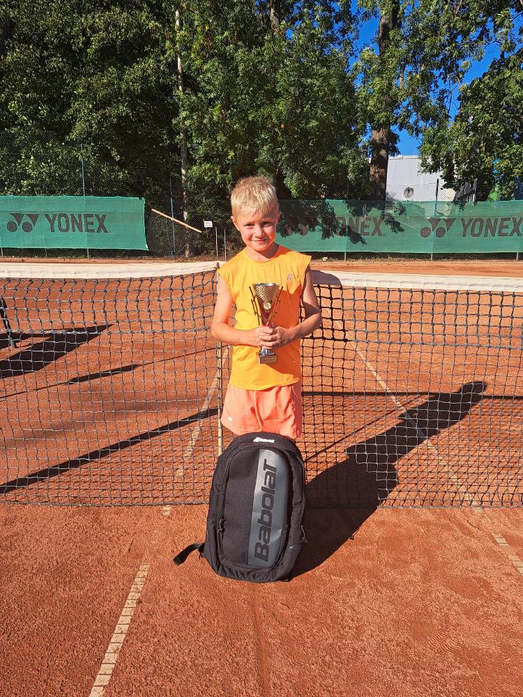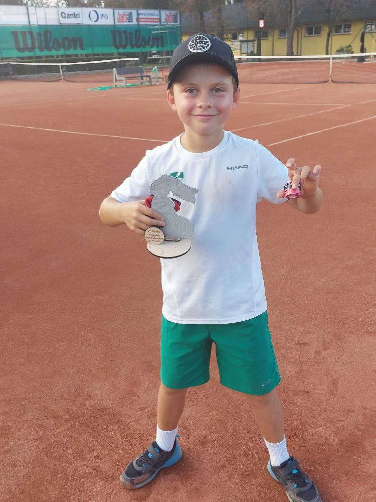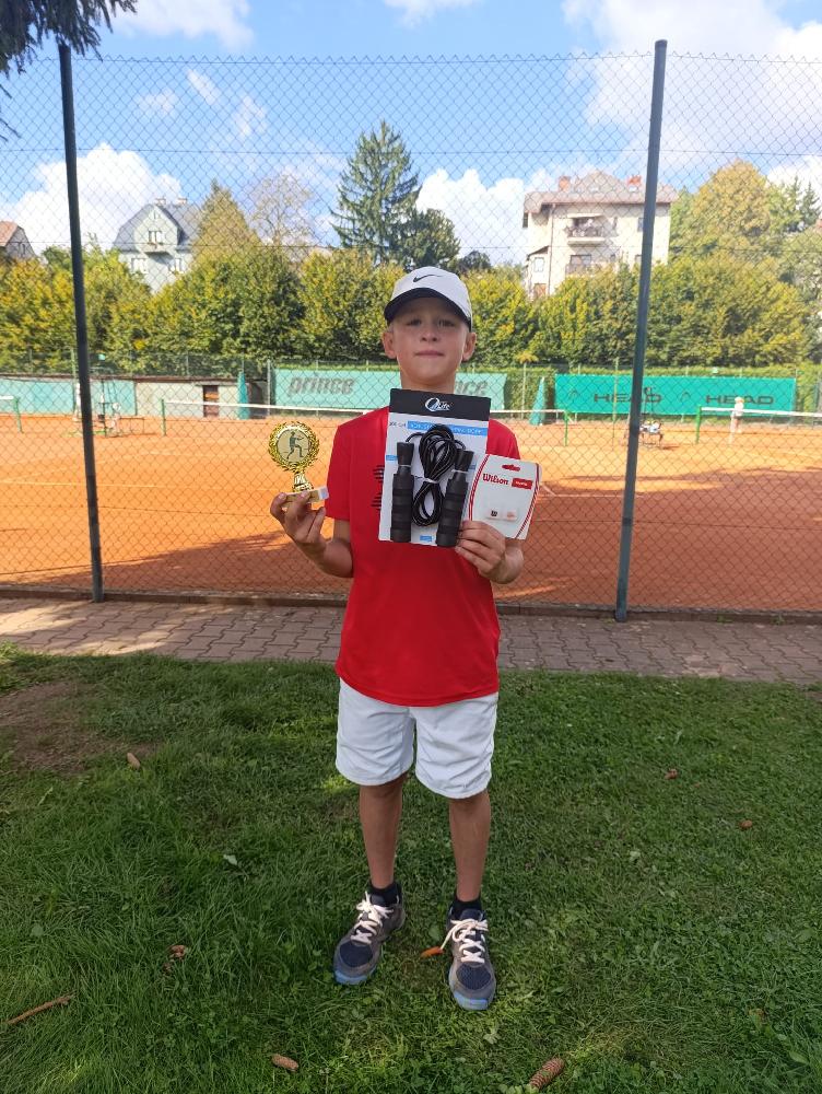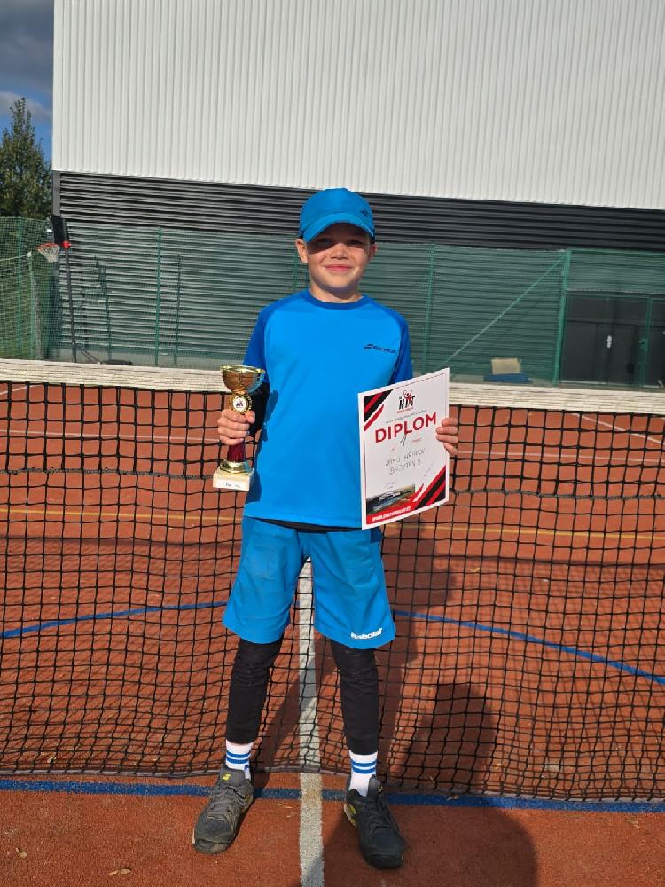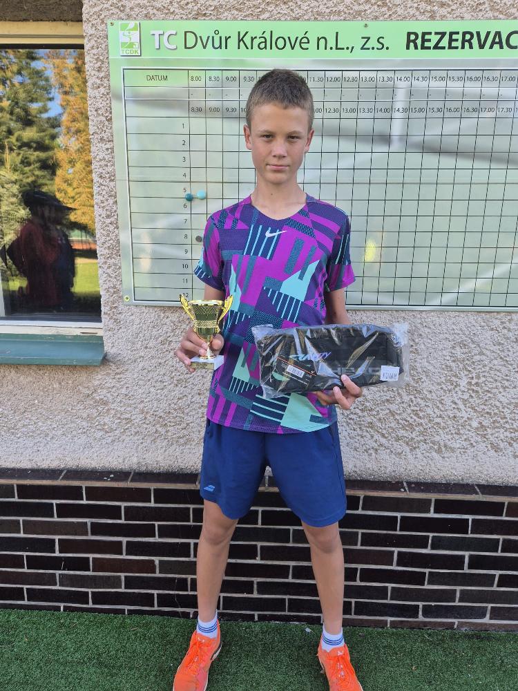 KUBA VELÍK na stejném turnaji skončil na 6. místě. Oba borci od příští sezóny budou mlátit do tvrdých tenisáků v mladších žácích.