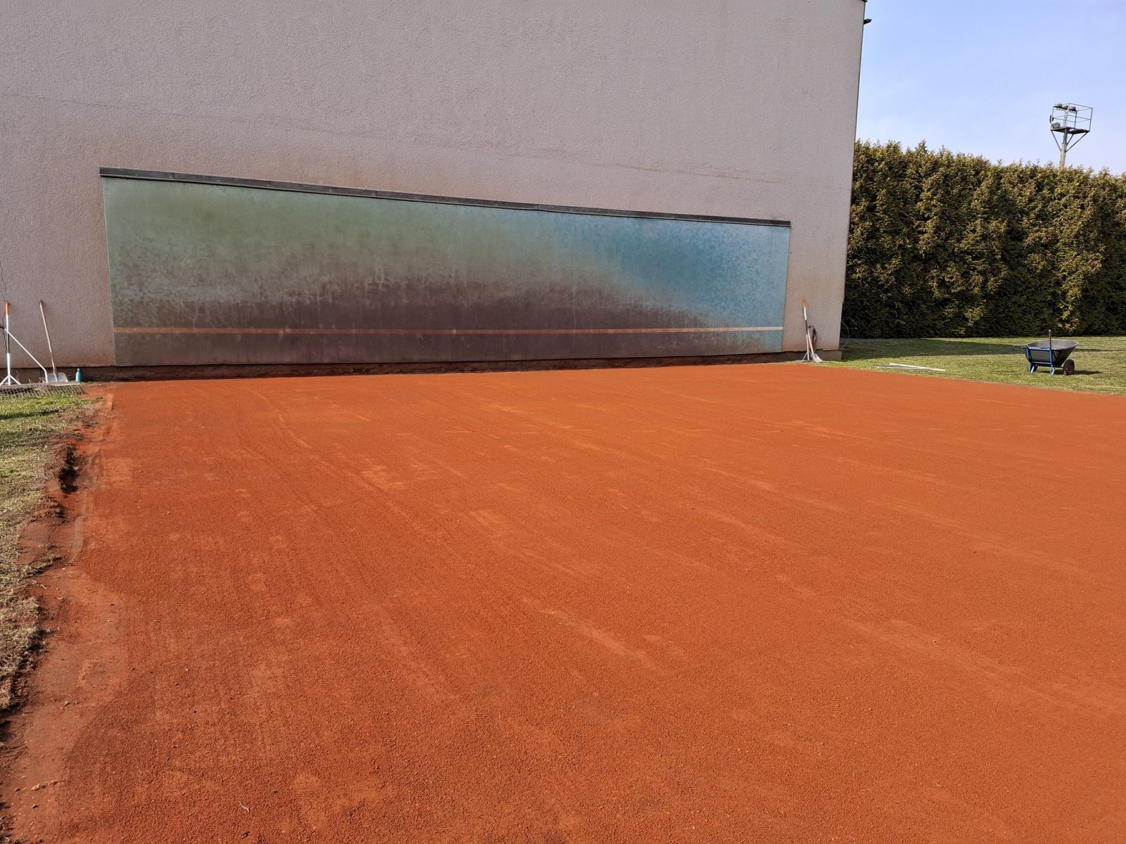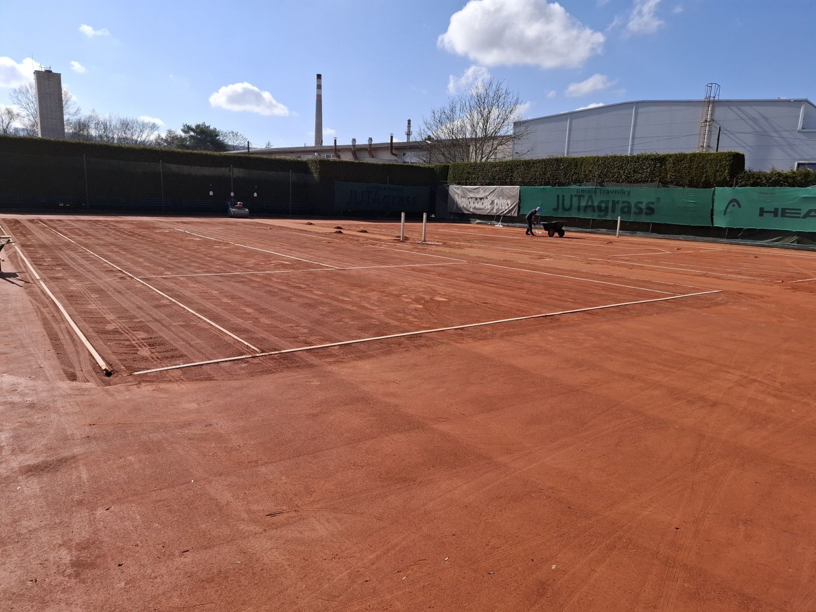 Ve středu jsme začali s úpravou antukového povrchu na naší zdi za pevnou halou, dnes jsme strhli starou antuku z několika předních kurtů.